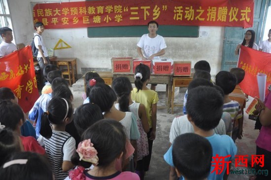 【新西网7月24日新闻·通讯员 容浒熙】2015年7月4日,在县团委的沟通协调下,广西民族大学预科教育学院“圆梦天使”团队带着2200名大学生的爱心来到我县平安乡巨塘小学开展“缤纷梦想 爱在巨塘”三下乡社会实践志愿服务活动。10多天里,志愿者们开展了爱心捐赠、义务支教、实地调研、劳动体验等丰富多彩的活动,取得了积极的成效。 7月5日,在巨塘小学举行了隆重的捐赠仪式,“圆梦天使”代表团团长江代晋表示,从去年的新闻和照片中,我认识了大家,知道大家学习环境的艰苦,为此我们动员全院同学给大家募捐,大学生们把自己的零花钱、书籍、文具、体育用品和衣物都捐给了大家,今天我把他们的爱心带到这里,希望同学们能接受我们的帮助。我院书画协会更是为小学精心准备了两幅字画作为礼物,勉励小学生们刻苦学习。巨塘小学校长周岚和小学生代表接收了我们的捐赠,并表达了谢意,大学生们第二次来到这里,带来了学习用品,带来了礼物,更带来了大学生学习的理念,同学们难得有机会和大学生们一起学习一起交流,希望小学生们珍惜这个机会,认真向大学生学习,端正学习态度,树立正确的学习目标,争取将来也能成为一名优秀的大学生。 在随后的8天里,“圆梦天使”团队合理安排了课程,认真做好了义务支教,期间重点开设了书法(软笔和硬笔)、绘画、手工制作、音乐、武术、自护教育等课程,不断提高小学生的艺术修养,同时还辅助开设了英语、语文和数学等课程,辅导小学生完成暑期作业,帮助他们解决学习过程中遇到的困惑,提高他们的学习兴趣。志愿者们对各类课程作了精心的准备,笔墨纸砚、案例分析、情景小品一个不落,目的就是想增强教学的吸引力,提升教学效果;而小学生们的积极性更是出乎志愿者们的预料,支教本是自愿的,可全校96名学生中竟然有62名学生放弃暑假休息时间而参与其中,有的还带上自己的弟弟妹妹和家长一起来参加我们的活动,早上9点钟开课,8点多,就有很多小学生来到志愿者住宿的地方集合了。课堂结束之后,为确保小学生的安全,我们还专门安排大学生送小学生回家,也正是由于“教”与“学”双方的努力,义务支教取得了圆满成功。 此外,志愿者们还挑出部分时间段开展“十个一”系列活动,之前在全院进行了一次爱心募捐,为小学生募捐了善款2764元,书籍254册,衣物243件,书包6个;用善款购买了儿童书籍150册,进一步充实了去年兴建的“爱心图书角”;在教学过程中,以“中国梦 家乡梦 我的梦”为主题,举办了一次书画展,志愿者们给获奖的同学颁发了奖品;在操场上还举办了一次“趣味”运动会和一次游园活动,老鹰捉小鸡、大网捕鱼、丢沙包、萝卜白菜蹲……孩子们玩得不亦乐乎;每天晚上给小学生们播放动画片电影,观影者络绎不绝;让志愿者们感触最深的还是“千梦千寻”活动,小小的心形彩纸上写满了孩子们的梦想,“我想要一本作文书”,“我想考上北京大学”,“我想成为宇航员,飞向太空”,“我想哥哥姐姐们明年还能再来”,“我想要一块橡皮擦”,“我想妈妈了,想和妈妈通一个电话”,“我想成为像大姐姐一样的大学生”……孩子们的梦想真挚而朴实,深深感到着大学生,志愿者们也竭尽所能帮助小学生实现梦想,暂时无法实现的梦想,志愿者们也以一封封的信件予以回复,鼓励小学生们不要轻易放弃梦想,要为梦想而奋斗而努力。 在整个活动过程中,实践团队还安排了专人对农村小学的教育现状进行了调研,访谈了小学校长和老师,收集了学生们的意见,还走访了部分家长,一起探讨孩子的教育,同时还发放了部分调查问卷,在多方收集数据的基础上拟撰写出调研报告;三下乡的生活,不仅锻炼了大学生的专业技能,更是提高了他们的生活能力,在这短暂的10多天里,他们分组值日,真正体验买菜、做饭、洗碗一条龙的家务劳动,要精打细算做好食材采购,要精心搭配控制火候烹饪出可口的饭菜,要打扫战场,洗碗、抹桌一静到底,10多天的家务劳动培养出一批合格的“大厨”。 三下乡活动转眼结束了,志愿者们依依不舍的离开了巨塘村,这是值得回味的一段日子,他们尝试了很多的第一次,第一次来到农村,第一次睡在地板,第一次与蚊子共眠,第一次洗菜做饭,第一次当“大厨”,第一次给小学生上课,第一次表演小品,第一次与小朋友谈心,第一次……第一次是艰苦的,但也是快乐的,因为“第一次”见证了他们的成长。 |